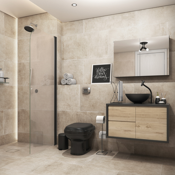 Kit Vaso Sanitário Convencional com Assento Preto Saída Vertical Misti Icasa