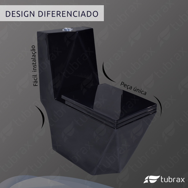 Vaso Sanitário Monobloco Completo Caixa Acoplada Privada Preto Modelo Diamante – Tubrax