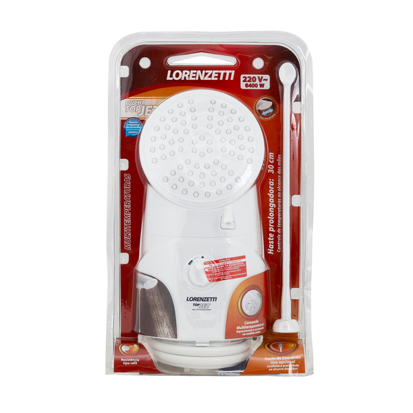 Chuveiro Elétrico Top Jet, da Lorenzetti Modelo moderno que oferece muito mais conforto para você! Design moderno que combina com a decoração: O Chuveiro Elétrico Top Jet, da Lorenzetti, é a peça que faltava para deixar o seu banho mais agradável e ainda conferir um toque charmoso ao banheiro! Esse é um modelo com dimensões de 16,1 x 12,1 x 28,4 cm e está disponível na cor branca, que combina com uma infinidade de decorações. O seu lindo e moderno design vai agregar valor estético ao ambiente! Indicada para qualquer estação do ano: Essa não é uma peça meramente decorativa, ela é extremamente funcional! Por ser um modelo multitemperatura que possui 4 opções disponíveis, você poderá escolher a temperatura desejada. Nada como um banho quentinho para relaxar ou aquele banho fresco para revigorar a gente, não é?! Excelente custo-benefício: Essa é a oportunidade perfeita para você que busca custo-benefício! Fabricado em plástico e com proteção contra choques com dispositivo DR, essa peça para fixação direta na parede tem tensão elétrica de 220 V e potência de 6400 W. Entrega rápida para todo Brasil. Garantia de qualidade. Fácil instalação.