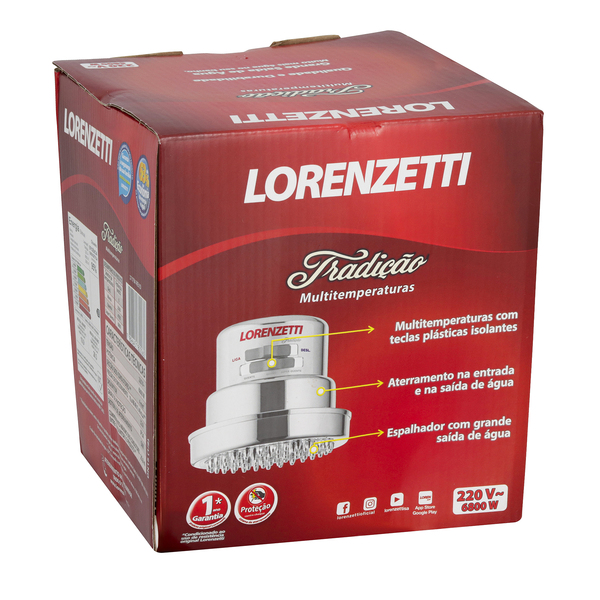 Chuveiro Elétrico Multitemperatura 220V 6800W Cromado Tradição Lorenzetti Nada melhor que um banho relaxante depois de um dia agitado. Com o Chuveiro Elétrico Multitemperatura 220V 6800W Cromado Tradição Lorenzetti seus banhos nunca mais serão os mesmos! Conheça o produto. Características do Chuveiro Elétrico Multitemperatura 220V 6800W Cromado Tradição Lorenzetti Uma vez instalado na parede e com tensão elétrica adequada de 220 V, o Chuveiro Elétrico Multitemperatura 220V 6800W Cromado Tradição Lorenzetti já está pronto para uso. Entrega rápida para todo Brasil. Garantia de qualidade. Fácil instalação.