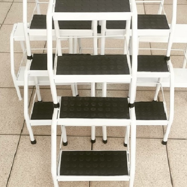 Escadinha com 02 degraus pintura epóxi pés tubulares 3/4 em pintura epóxi com ponteira; dois degraus; revestido em material sintético anti derrapante. Entrega rápida para todo Brasil. Garantia de qualidade. Fácil instalação.